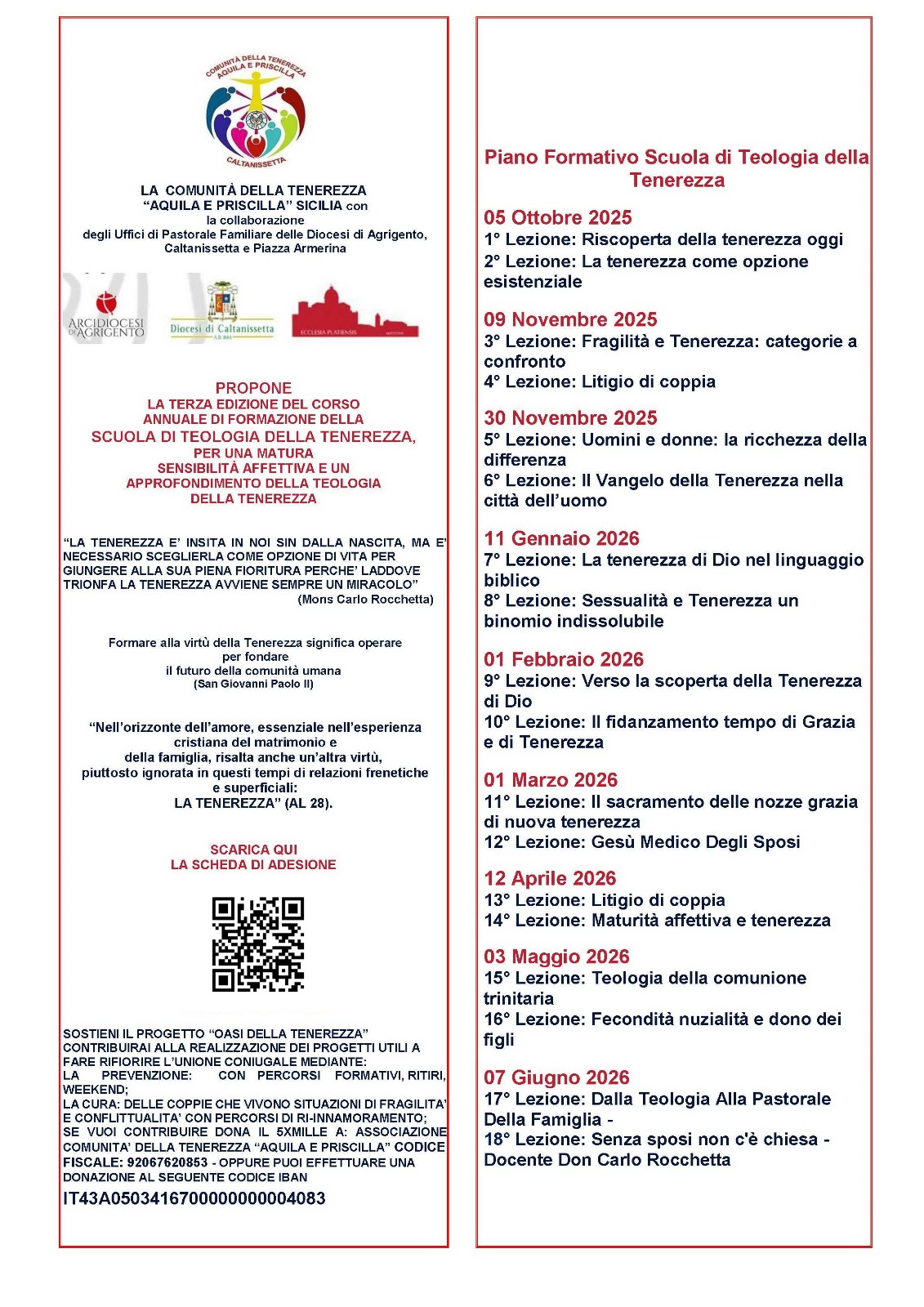 Domenica 5 ottobre 2025 inizia il 3° corso di formazione della Scuola di Tenerezza in Sicilia