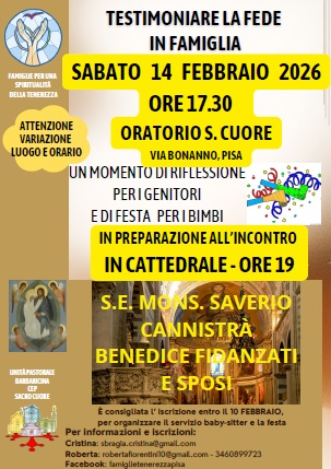 Comunichiamo questa bella iniziativa delle FAMIGLIE PER UNA SPIRITUALITA’ DELLA TENEREZZA DI Pisa.