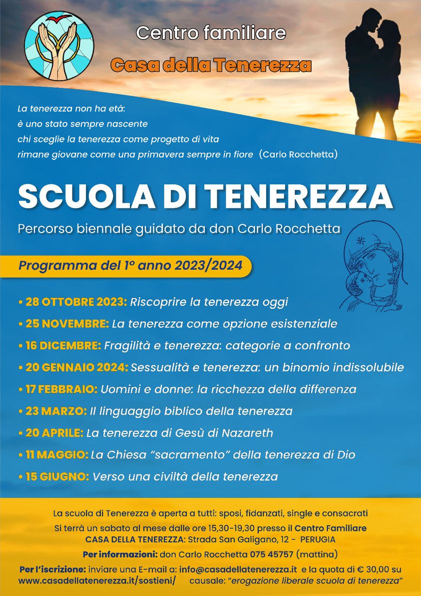 Parrocchia S.Bartolomeo in Tuto -Scandicci (FI) Via Salvemini 2/2, Scandicci -FI, ItalySiamo lieti di annunciare l'inizio della Scuola di Tenerezza a Firenze, con il primo incontro che si terrà sabato 24 gennaio dalle ore 10,00 alle ore 12,00 a Scandicci presso la Parrocchia di S.Bartolomeo, secondo il seguente programma : Il calendario completo degli incontri e indicato nella allegata locandina: